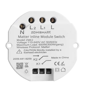 Zemismart Matter Wi-Fi Smart Inline Module Switch 2 Gang Relay Breaker